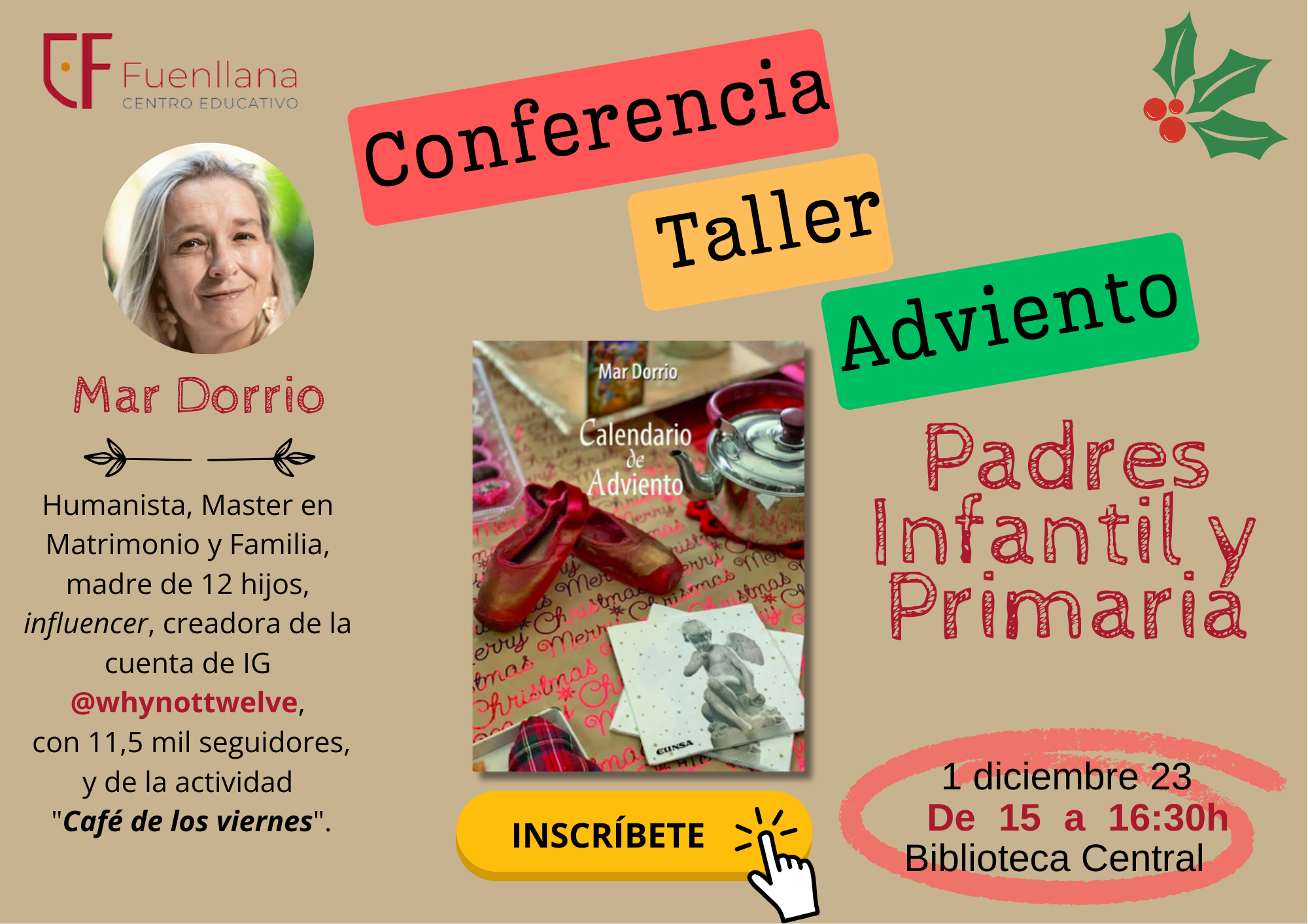 Tras la conferencia habrá un taller preparativo, de cara al Adviento, donde padres y madres de infantil y primaria del colegio han sido invitados a participar.