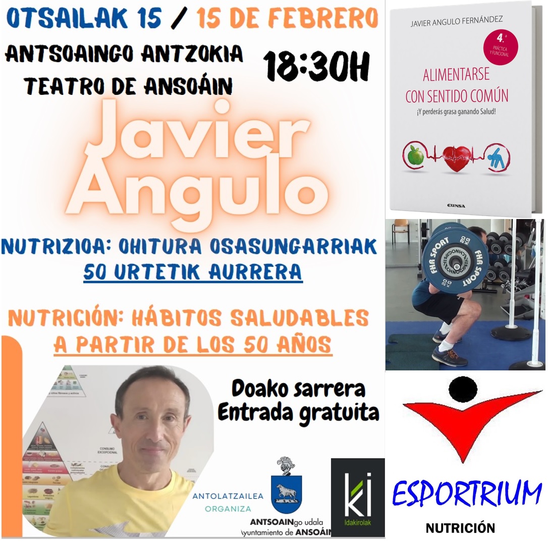 El próximo jueves, día 15 de febrero, a las 18:30 horas, tendrá lugar el evento "Nutrición: hábitos saludables a partir de los 50 años", donde se compartirán las ideas del libro "Alimentarse con sentido común" de Javier Angulo.