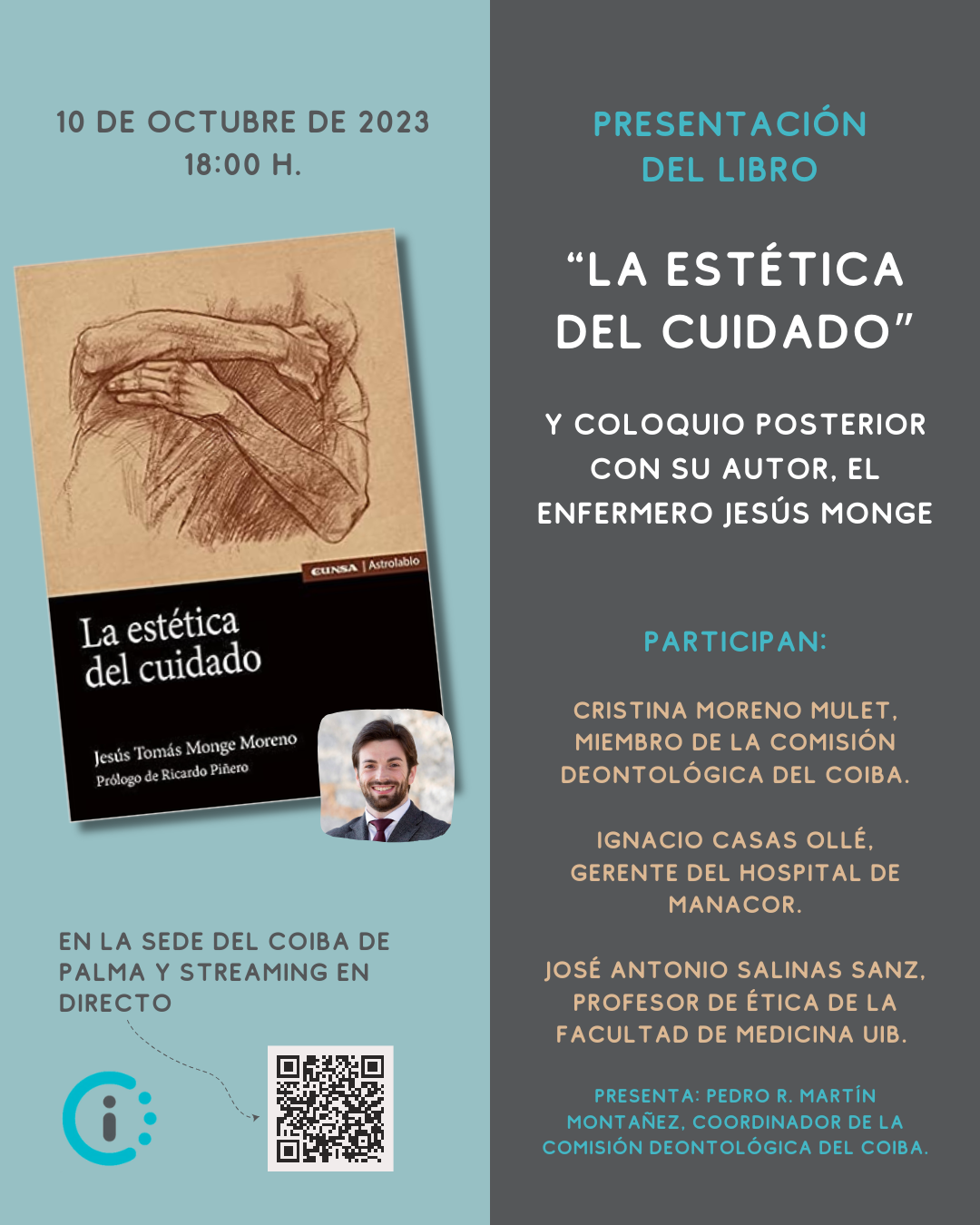 El Colegio Oficial de Enfermeros y Enfermeras de las Islas Baleares (COIBA) acoge en su sede de Palma la presentación del libro “La estética del cuidado”, del doctor en Enfermería Jesús Monge. Su autor compartirá las principales reflexiones de esta obra, la cual ahonda en cómo la relación entre el profesional sanitario y el paciente se está viendo afectada por múltiples factores como la falta de habilidades de comunicación, los constantes replanteamientos éticos y los problemas derivados de la gestión y la falta de recursos. Ante esta profunda crisis, “La estética del cuidado” propone avanzar hacia un modelo de relación y de cuidados desde una perspectiva más humana, integral, ética y estética, donde el liderazgo enfermero juega un papel fundamental.