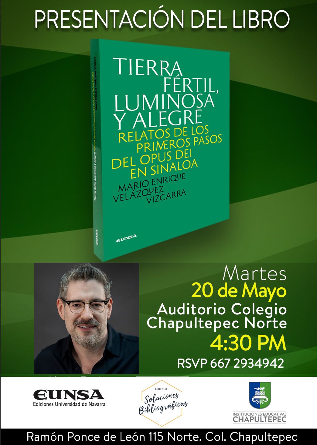 El próximo martes 20 de mayo de 2025, a las 16:30 h, tendrá lugar la presentación del libro Tierra fértil, luminosa y alegre. Relatos de los primeros pasos del Opus Dei en Sinaloa de Mario Velázquez en el Colegio Chapultepec Norte (Ramón Ponce de León 115 Norte. Col. Chapultepec, Culiacán).