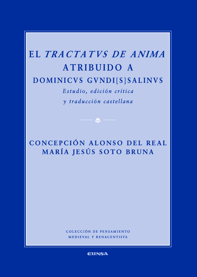 Se presenta por primera vez en castellano una monografía dedicada al Tractatus de anima atribuido a Domingo Gundisalvo (s. XII). La obra reviste una importancia filosófica capital, perteneciente especialmente a la antropología y psicología metafísicas, discutiéndose en ella las cuestiones decisivas para la elaboración de una metafísica de la persona a partir del siglo XIII y recoge prácticamente todos los elementos del pensar medieval anterior, incluidas las especulaciones árabo-hebraicas.