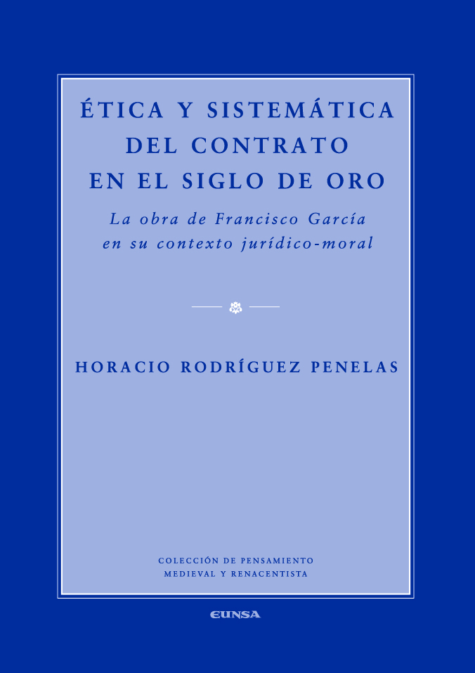 La obra analiza la sistemática del contrato realizada por Francisco García, en el Tratado utilísimo y muy general de todos los contratos, cuantos en los negocios humanos se suelen ofrecer (1583). Estudia los principales contratos utilizados en el Siglo de Oro español, examinando el paso del método casuístico aplicado durante el siglo XVI a la sistematización de la temática contractual que realizó el dominico valenciano. De este modo, García logra reducir la materia de los contratos a ciencia partiendo de una descripción fenomenológica de cada uno de ellos, comenzando por su definición, su naturaleza, las partes contrayentes y los derechos y obligaciones de cada una de ellas, para arribar finalmente a su valoración ética. La presente obra realiza también un estudio comparativo del pensamiento de F. García sobre los contratos de préstamos y cambios, con el de cuatro importantes pensadores que le precedieron: Domingo de Soto, Martín de Azpilcueta, Tomás de Mercado y Bartolomé de Albornoz.