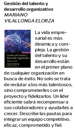 Es un libro a medio camino entre teoría y práctica pues, aunque nace de las realidades y problemas concretos que tiene toda organización, nos ofrece una visión global de la gestión del talento en la empresa.