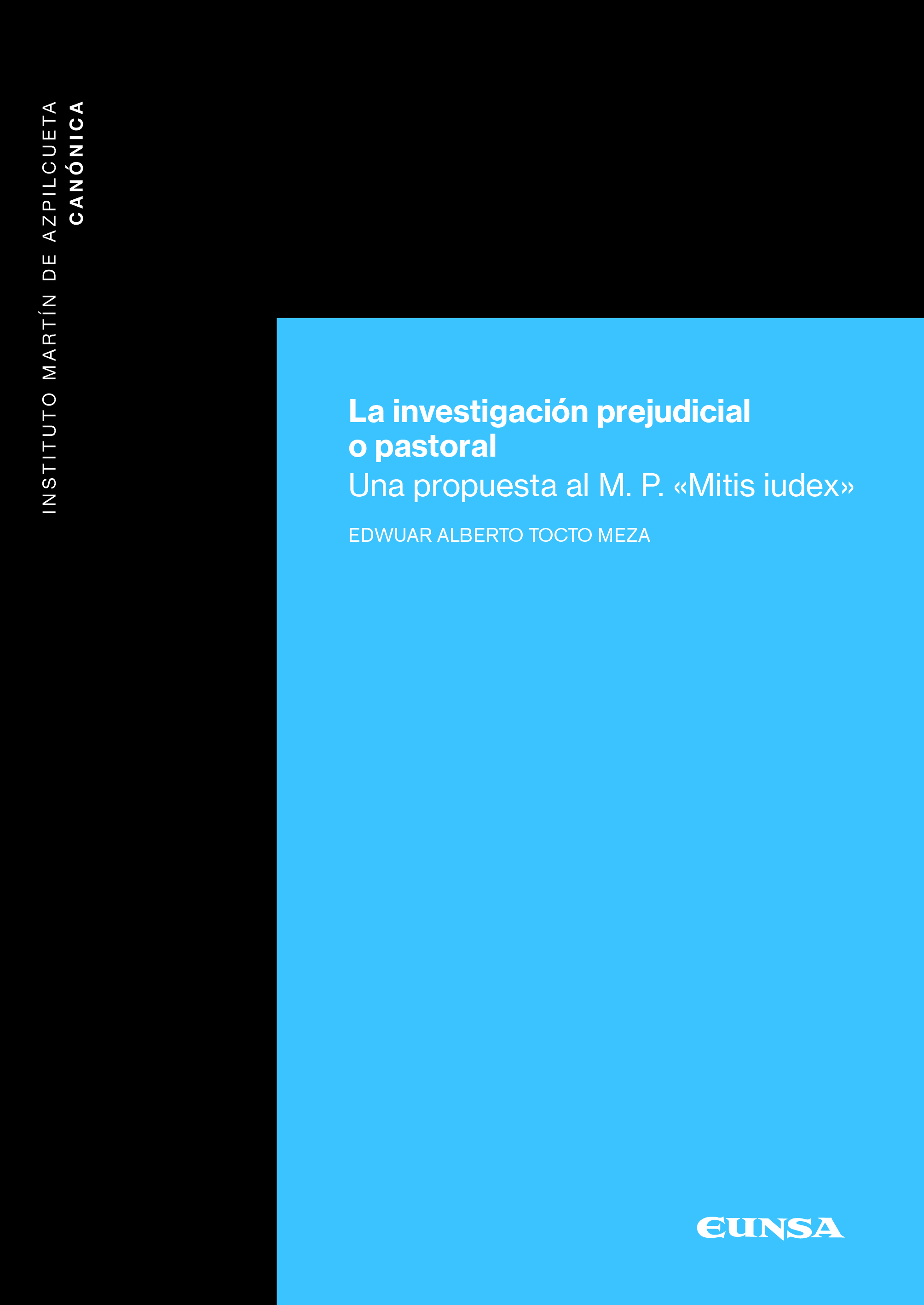 La reforma del proceso matrimonial del Papa Francisco ha puesto a la luz una nueva institución canónica llamada Investigación prejudicial o pastoral. Esta obra es una propuesta que permite descubrir los fundamentos teóricos y las manifestaciones prácticas de este instituto al profundizar en su diseño canónico. Se dice esto no por una simple preocupación técnica, sino a modo de presupuesto metodológico de una figura canónica que está llamada a afrontar las crisis matrimoniales de manera íntegra y eficaz a la luz de Cristo, Buen Pastor. Por eso, este instituto canónico puede ser considerado como un momento normativo vinculante dentro de un proceso vivo existencial que evolucionará según las necesidades de la Iglesia, y por tanto, más que abordarla como un punto de llegada, se debe asumir como un momento de impulso al desarrollo doctrinal, de fortalecimiento a la pastoral matrimonial y de revitalización del Derecho canónico matrimonial.