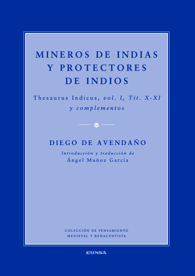 El presente volumen del Thesaurus Indicus, cuarto de los publicados en nuestra colección Pensamiento Medieval y Renacentista, completa el primero de la edición de Amberes, 1668. El autor se refiere aquí a la ética de los Mineros de Indias (Título X) y a la de los Protectores de Indios (Título XI). El volumen incluye asimismo las Additiones o Complementos que el autor añadió para redondear los temas que, tras toda la redacción, le parecieron incompletos, o aquellos otros que, en virtud de acontecimientos recientes, ameritaban de nuevas consideraciones. Con esto, se vuelven a tocar aquí la mayoría de los temas de los once primeros títulos. Desde la justificación del título de «Thesaurus», hasta nuevas consideraciones sobre el Protector de Indios, pasando por reflexiones de tipo mercantil, y otras como la donación de Alejandro VI -en que de nuevo nos manifiesta su españolismo antifrancés-, temas de especial interés del autor -por referirse a asuntos de la Compañía de Jesús- y curiosas puntualizaciones hechas a propósito del tema de la venta de vino por parte de eclesiásticos. Estos últimos temas son los elegidos por Ángel Muñoz García para integrar el estudio introductorio.