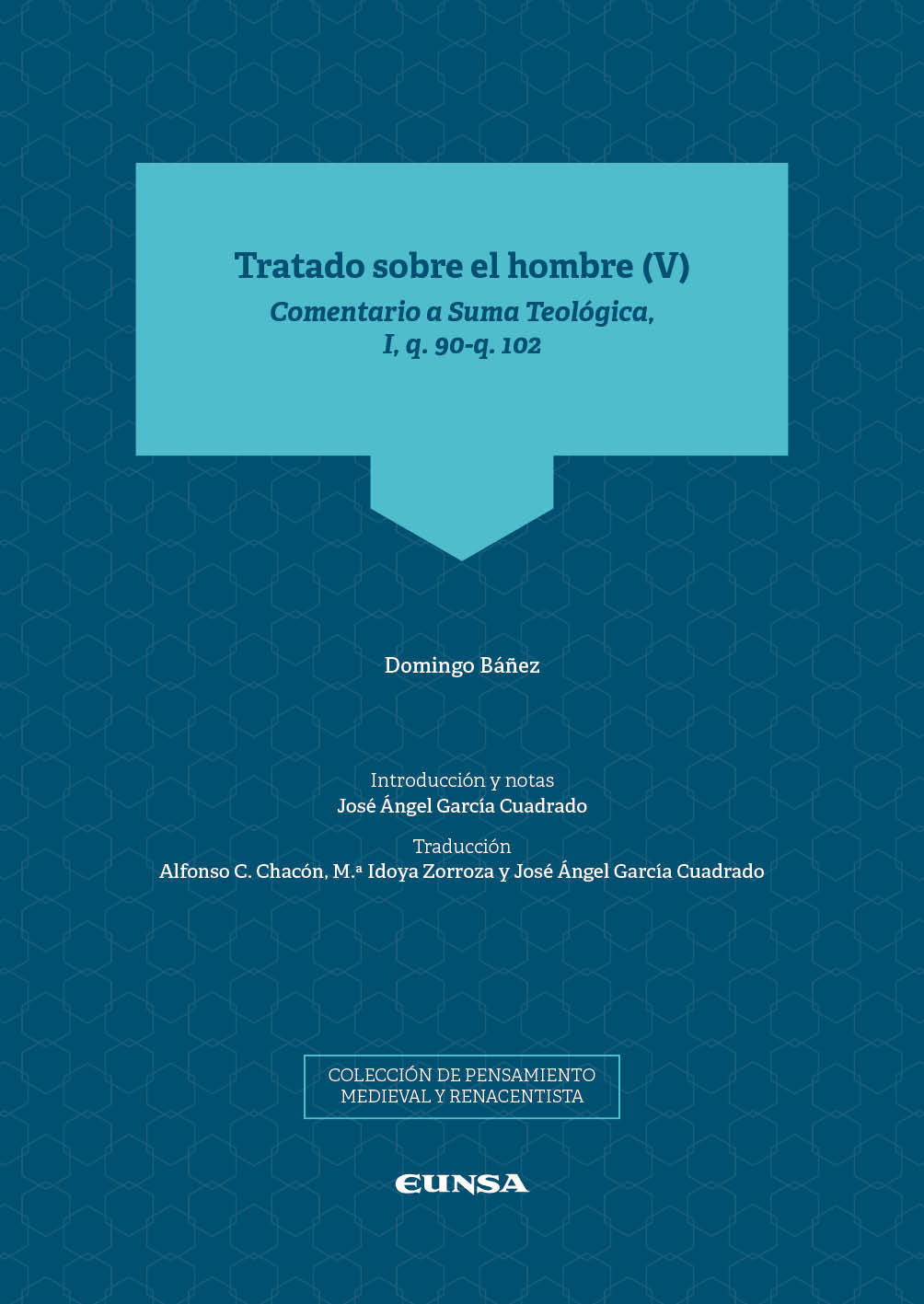 Con este volumen se concluye el proyecto de edición y traducción del Tratado sobre el hombre del Comentario a la Suma Teológica de Tomás de Aquino, publicado en Salamanca en 1588. Este quinto volumen incluye la traducción de las cuestiones 90 a 102 centradas en la creación del primer hombre: en cuanto al alma (q. 90), en cuanto al cuerpo (q. 91), la creación de la mujer (q. 92), creación del hombre en cuanto a su fin (q. 93), en cuanto al intelecto en el estado de inocencia (q. 94), en cuanto a la voluntad (q. 95), en cuanto al dominio (q. 96), en cuanto a la conservación del individuo (q. 97) y de la especie (q. 98); sobre la condición de la descendencia de Adán en cuanto al cuerpo (q. 99), en cuanto a la justicia (q. 100), en cuanto a la ciencia (q. 101); y finalmente, sobre el lugar del hombre, es decir, el Paraíso (q. 102).