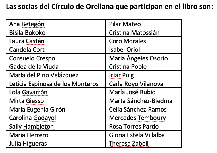 Las autoras quisieron dar vida al libro el 14 de marzo en la Sala de Abante en Madrid, donde tuvo lugar la presentación del libro. Destacó la asistencia de las integrantes del Círculo de Orellana, quienes dieron realce al evento. Entre las personalidades destacadas que participaron estuvieron Gadea de la Viuda, presidenta de la Fundación Abante, María Cruz Díaz de Terán, titular de Filosofía del Derecho en la Universidad de Navarra, y Asunción Valdés, periodista y escritora, autora del prólogo del libro.