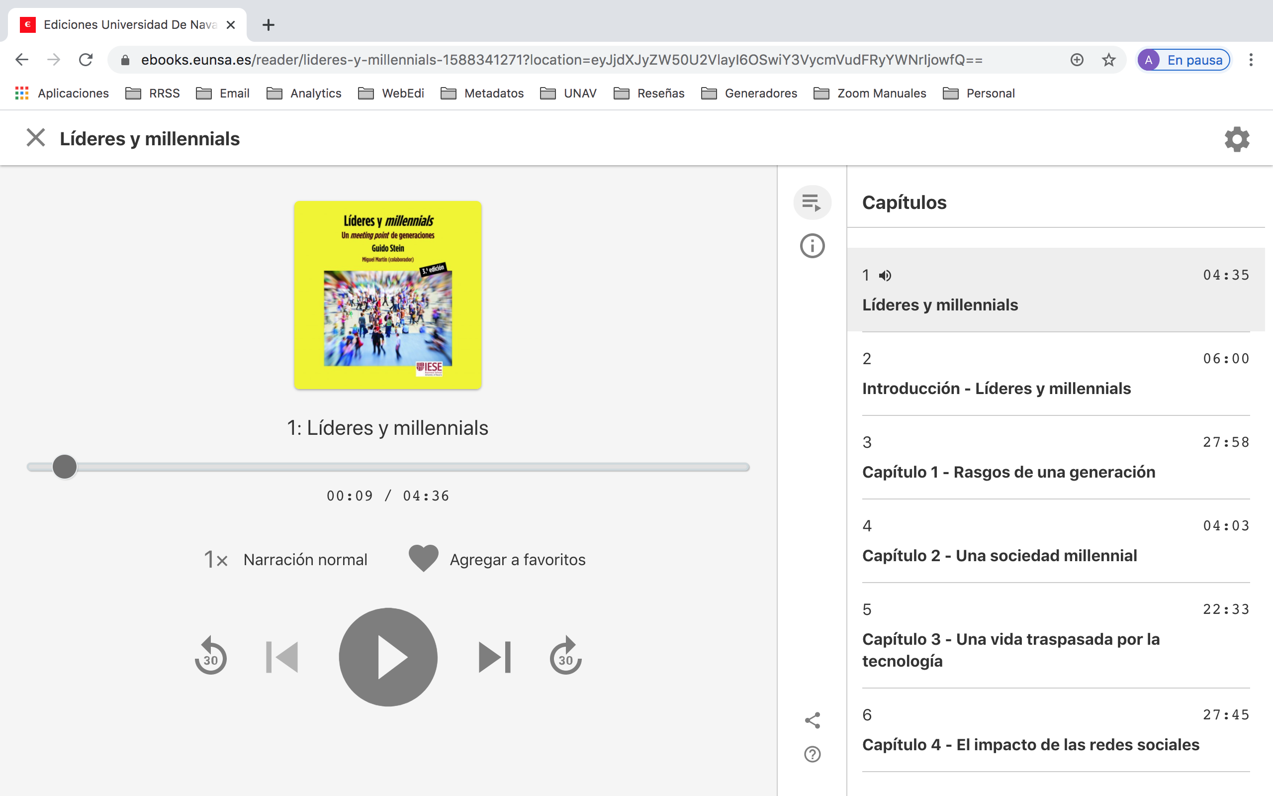 2. Aumentar y reducir la velocidad de narración: puedes elegir la velocidad con la que se escucha el audiolibro.