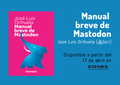 ¡Hola! Tenemos una excelente noticia para los amantes de las redes sociales y la tecnología. El próximo 17 de abril estará disponible en eunsa.es y amazon el libro "Manual breve de Mastodon" de José Luis Orihuela (@jlori).